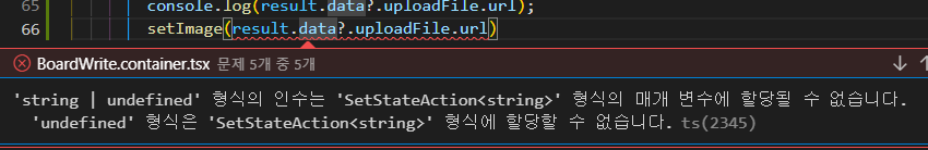 'string | undefined' 형식의 인수는 'SetStateAction<string>' 형식의 매개 변수에 할당될 수 없습니다. 'undefined' 형식은 'SetStateAction<string>' 형식에 할당할 수 없습니다.ts(2345)
