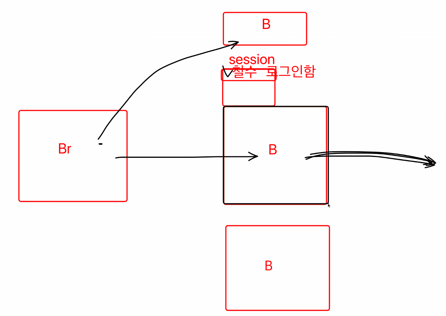 백엔드의 변수에 철수가 로그인했다고 기록을 해놨었습니다.