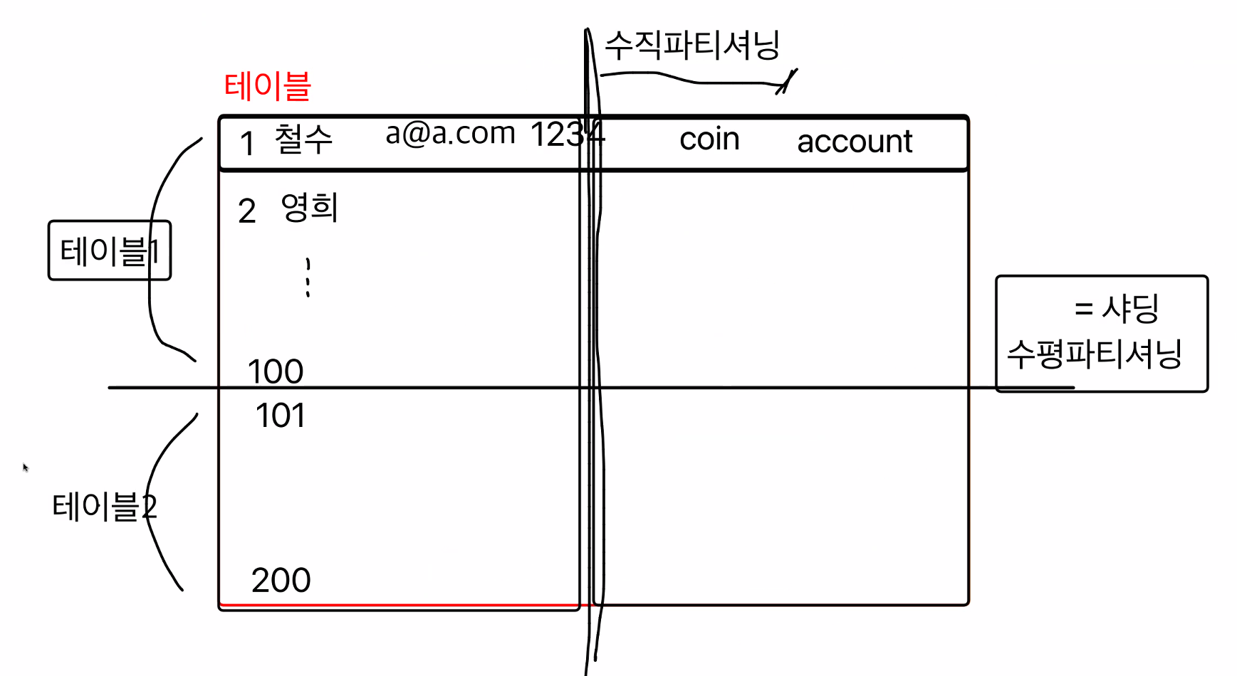 이를 수직 파티셔닝, 수평 파티셔닝 (데이터베이스 샤닝) 이라고 하며